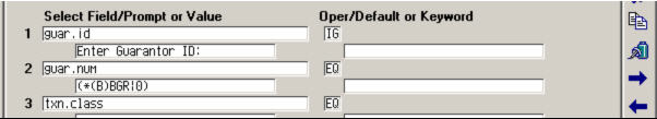 | BAR.PAT | top | bar.acct.guar.index | select on guar.id with IG then set up select as below: |
